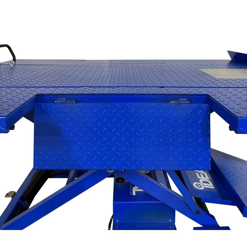 The iDEAL® U-2200-IEH UTV Lift is a powerful and versatile service lift engineered to handle UTVs, ATVs, trikes, and motorcycles with ease. Rated at 2,200 lbs, it features a wide 65″ platform and removable UTV side extensions with an integrated fold-down rear service panel, improving technician access and productivity.